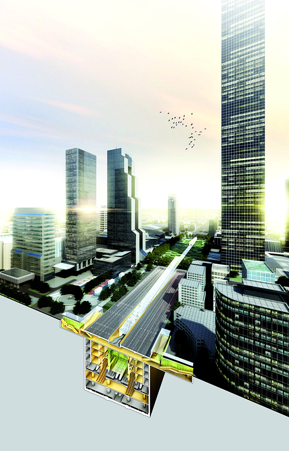 Après avoir réalisé l’université féminine Ewha Séoul en 2008, devenue une référence mondiale, Dominique Perrault renoue avec le succès dans la capitale de la Corée du Sud. L’architecte français a remporté, avec le consortium Junglim, le concours international pour la réalisation d’un complexe intermodal (train, métro, bus), d’un parc et d’un centre commercial dans l’arrondissement de Gangnam. Intitulé Lightwalk, ce projet est autant une infrastructure qu’un espace public ; autant une architecture, qu’un acte paysager. Pour autant, l’architecte se refuse à parler de bâtiment, évoquant plutôt “une intervention sans design”. Parfaitement rectiligne, le projet (800 x 80 m) s’inscrit dans un axe majeur de la capitale, Yeongdong-daero. Dans ce lieu dédié principalement à la mobilité, le parc de 32 ha se compose en fait de deux parcs : l’un aérien, l’autre souterrain. Comme une grande poutre inclinée venant plonger dans le sous-sol de la ville. En plein cœur de Séoul, Dominique Perrault met ainsi en pratique sa théorie du groundscape à grande échelle, à l’horizon 2023.